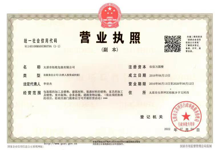 首頁(yè) >> 公司介紹    太原市鈺乾包裝有限公司 - www.gongtuanwang.cn